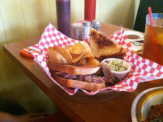 Meanwhile, on the side of the country, Pho Boy Rob sent along these pictures of him and his family chowing down at a similarly awesome BBQ joint in Dallas Texas....